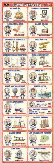 Záložka obsahuje 47 slavných vynálezců včetně jejich portrétů a zobrazení jejich nejvýznamnějších vynálezů. Pro úplnost nechybí data vynálezů, národnost a data narození a úmrtí vynálezců… Viac…